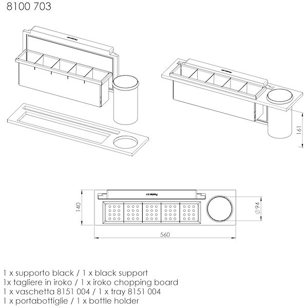 Anmerkungen:Das Schneidebrett ist nur in den Schalen mit einer Tiefe von 400 mm verwendbar