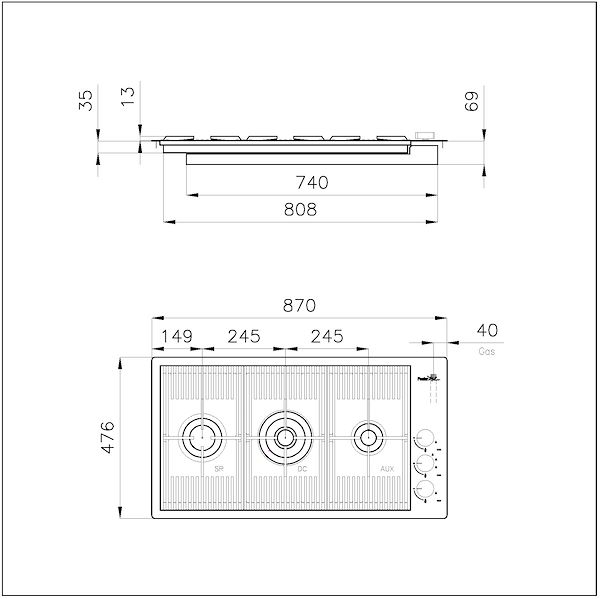 BRENNER AEOAEO-Brenner bieten 25 Prozent höhere Wirkungsgrade als Standardlösungen. Der Dual-Brenner mit 2 unabhängigen Kronen, die mit einem einzigen Knopf gesteuert werden, liefert eine Leistung von 1 bis 5 kW, wie sie nur in professionellen Modellen zu finden ist.