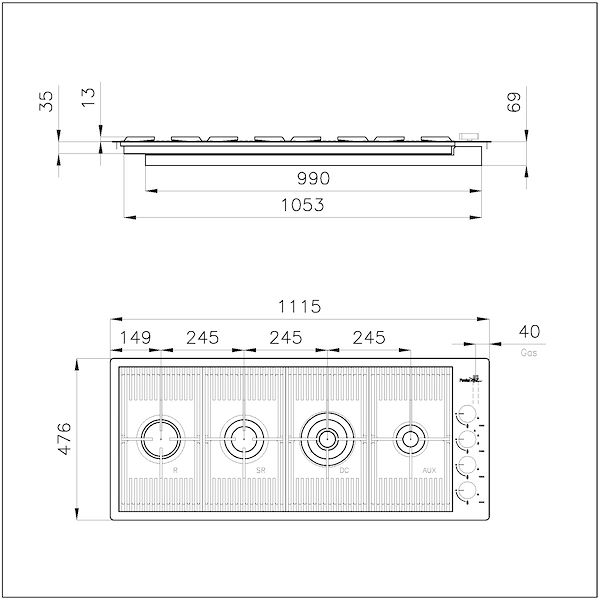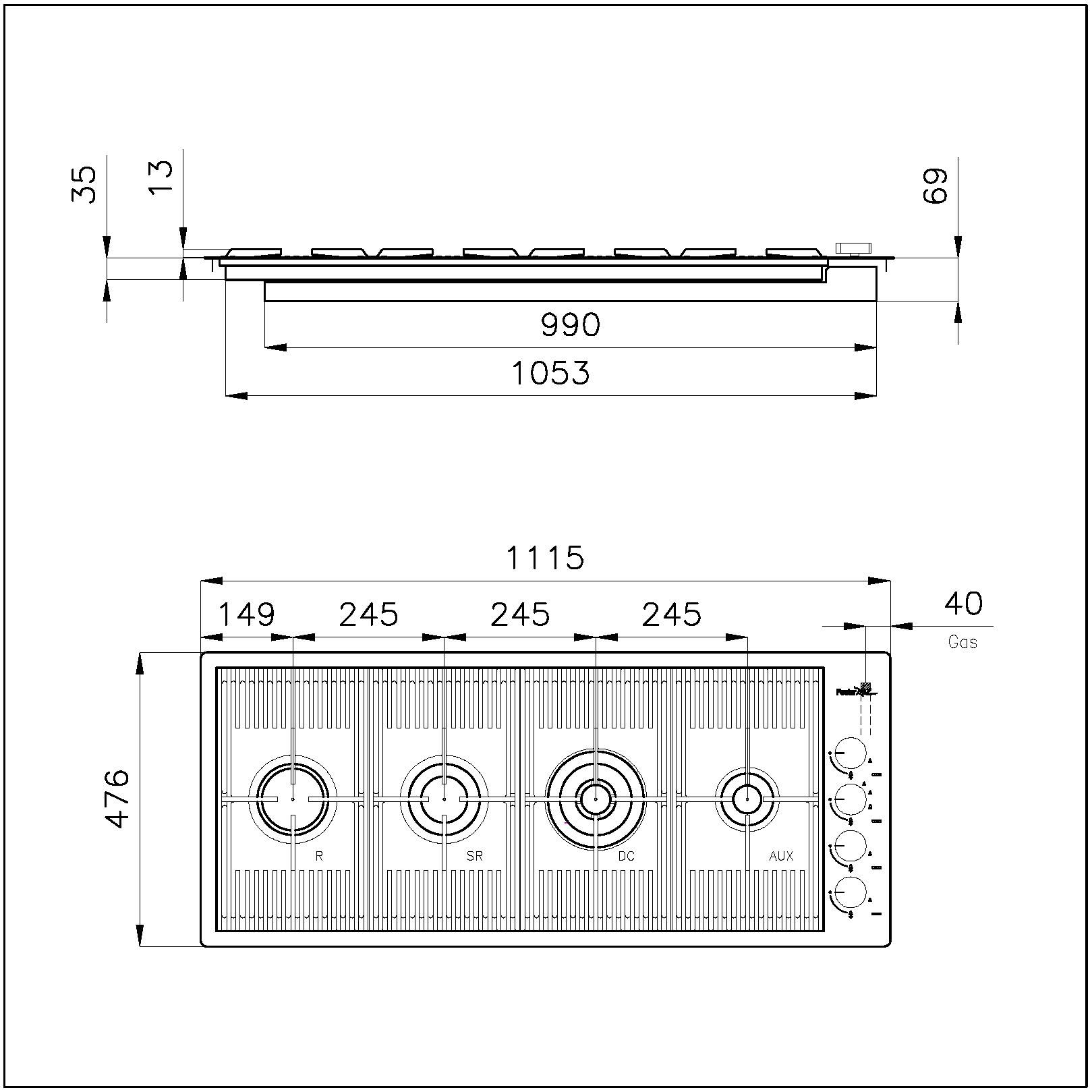 BRENNER AEOAEO-Brenner bieten 25 Prozent höhere Wirkungsgrade als Standardlösungen. Der Dual-Brenner mit 2 unabhängigen Kronen, die mit einem einzigen Knopf gesteuert werden, liefert eine Leistung von 1 bis 5 kW, wie sie nur in professionellen Modellen zu finden ist.