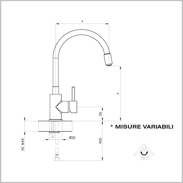 DREHUNG DES AUSLAUFSAlle Mischbatterien sind mit einem großen Drehwinkel ausgestattet. Einige Modelle ermöglichen eine volle 360°-Drehung.