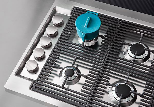 Ultraflache Modelle sind das klassische Beispiel für die Verbindung von Ästhetik und Funktionalität. Elegante Gitterroste, die eine große Fläche bilden, auf der Töpfe und Pfannen sicher bewegt werden können.