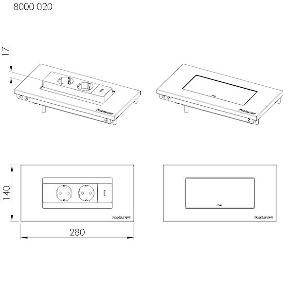 Zubehörteile für ZubehörkanäleSteckdosenleiste aus Edelstahl
