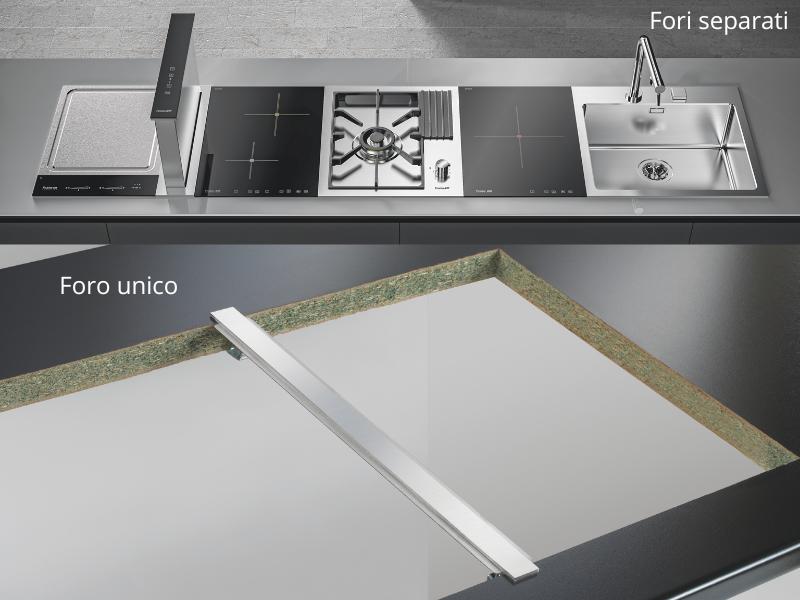 Die Domino-Serie von Foster ist eine multitechnologische Lösung für alle, die eine kompakte, elegante und individuelle Küche wünschen. Sie bietet eine Auswahl an austauschbaren Elementen – Gaskochfeld, Induktionskochfeld mit doppeltem PowerBoost und Bridge-Funktion, versenkbare Arbeitsplatten-Dunstabzugshaube und ein vollständig ausgestattetes Spülbecken – die sich wie Dominosteine miteinander kombinieren lassen, um die perfekte Konfiguration nach deinen Bedürfnissen zu gestalten.
