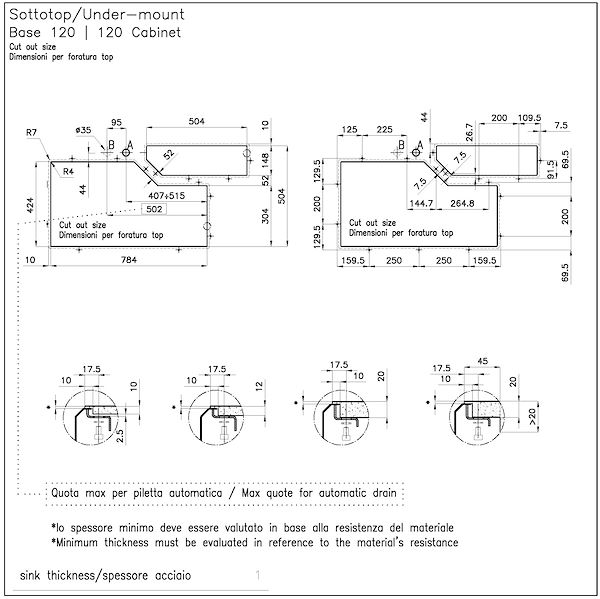 SPÜLBECKENStahlstärke 1 mm. Eine beachtliche Dicke, die maximale Robustheit für Spülen garantiert, die die Zeichen der Zeit nicht kennen.