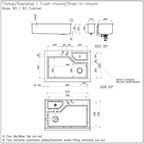 Der Überlauf ist ein allgegenwärtiges Sicherheitsmerkmal bei Foster-Spülbecken, das verhindert, dass das Wasser aus dem Becken überläuft, wenn man es einmal vergisst. Die Lösung des Randablaufs verbessert die Ästhetik dank ihrer quadratischen und essentiellen Form.