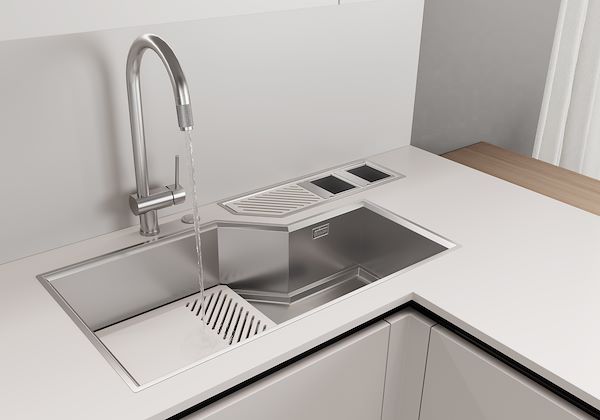 Spülbecken, die dank einer fortschrittlichen Produktionstechnologie eine beachtliche Tiefe von mehr als 20 cm erreichen und eine große Kapazität und Zweckmäßigkeit bei allen Spülvorgängen bieten.