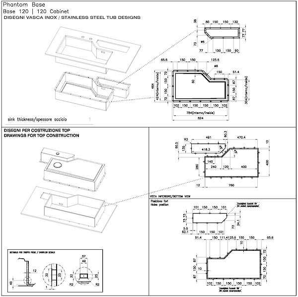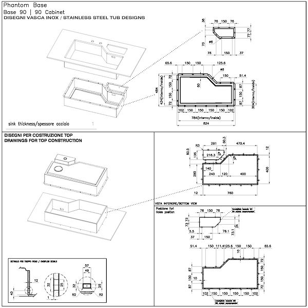 SPÜLBECKENStahlstärke 1 mm. Eine beachtliche Dicke, die maximale Robustheit für Spülen garantiert, die die Zeichen der Zeit nicht kennen.