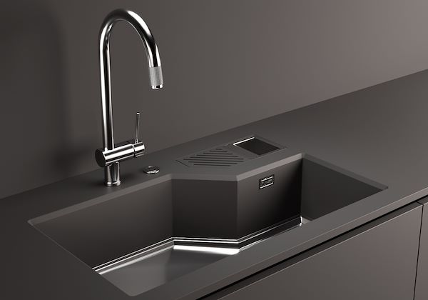 UMLAUFENDER ÜBERLAUFDer Überlauf ist ein allgegenwärtiges Sicherheitsmerkmal bei Foster-Spülbecken, das verhindert, dass das Wasser aus dem Becken überläuft, wenn man es einmal vergisst. Die Lösung des Randablaufs verbessert die Ästhetik dank ihrer quadratischen und essentiellen Form.
