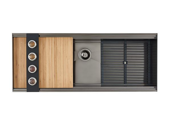 DREIFACHE AUSSPARUNG – SCHIEBE-ZUBEHÖR-SYSTEMFoster Milano hat ausgeklügeltes Design mit einem System mit drei Aussparungen, in denen das Zubehör auf verschiedenen Ebenen untergebracht ist. In der ersten gleiten die innovativen Gitter Black, eine große und praktische Fläche zum Spülen, Abtropfen, Arbeiten. Die zweite Aussparung ist zur...r Aufnahme und zum Verschieben einer kompletten Kombination von Zubehörteilen ausgelegt, die jeden Vorgang sicher und praktisch machen: Spülen, Abtropfen, Schneiden, Reiben... immer innerhalb des Spülbeckens.