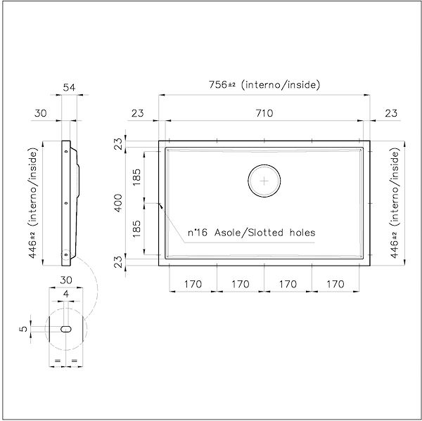 Der Spülbeckenboden Phantom BASE aus Stahl löst das Problem des Ablaufs von der Platte; das geformte Gefälle sorgt für einen perfekten Wasserabfluss. Die Radien und das schräge Profil von Phantom BASE garantieren Hygiene und eine einfache Reinigung.