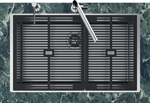 UMLAUFENDER ÜBERLAUFDer Überlauf ist ein allgegenwärtiges Sicherheitsmerkmal bei Foster-Spülbecken, das verhindert, dass das Wasser aus dem Becken überläuft, wenn man es einmal vergisst. Die Lösung des Randablaufs verbessert die Ästhetik dank ihrer quadratischen und essentiellen Form.