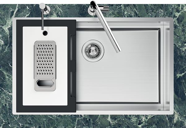 SPÜLBECKENStahlstärke 1 mm. Eine beachtliche Dicke, die maximale Robustheit für Spülen garantiert, die die Zeichen der Zeit nicht kennen.