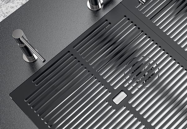 Der Überlauf ist ein allgegenwärtiges Sicherheitsmerkmal bei Foster-Spülbecken, das verhindert, dass das Wasser aus dem Becken überläuft, wenn man es einmal vergisst. Die Lösung des Randablaufs verbessert die Ästhetik dank ihrer quadratischen und essentiellen Form.