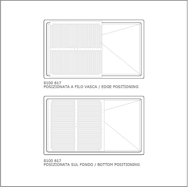 Die Wasserableitung am Boden des Beckens ist ein wichtiges Merkmal, das bei Foster-Lösungen immer berücksichtigt wird. Bei den quadratischen Modellen mit flachem Boden wird der Ablauf durch das elegante Rautenmuster gewährleistet, das den Wasserabfluss erleichtert.