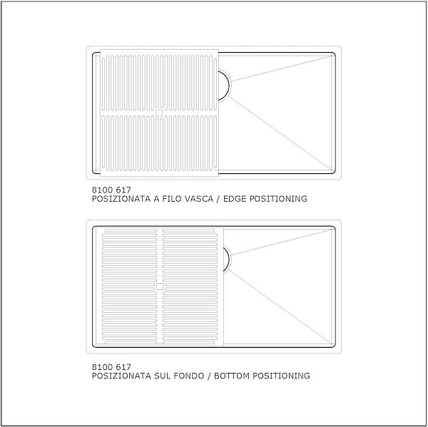 Die Wasserableitung am Boden des Beckens ist ein wichtiges Merkmal, das bei Foster-Lösungen immer berücksichtigt wird. Bei den quadratischen Modellen mit flachem Boden wird der Ablauf durch das elegante Rautenmuster gewährleistet, das den Wasserabfluss erleichtert.
